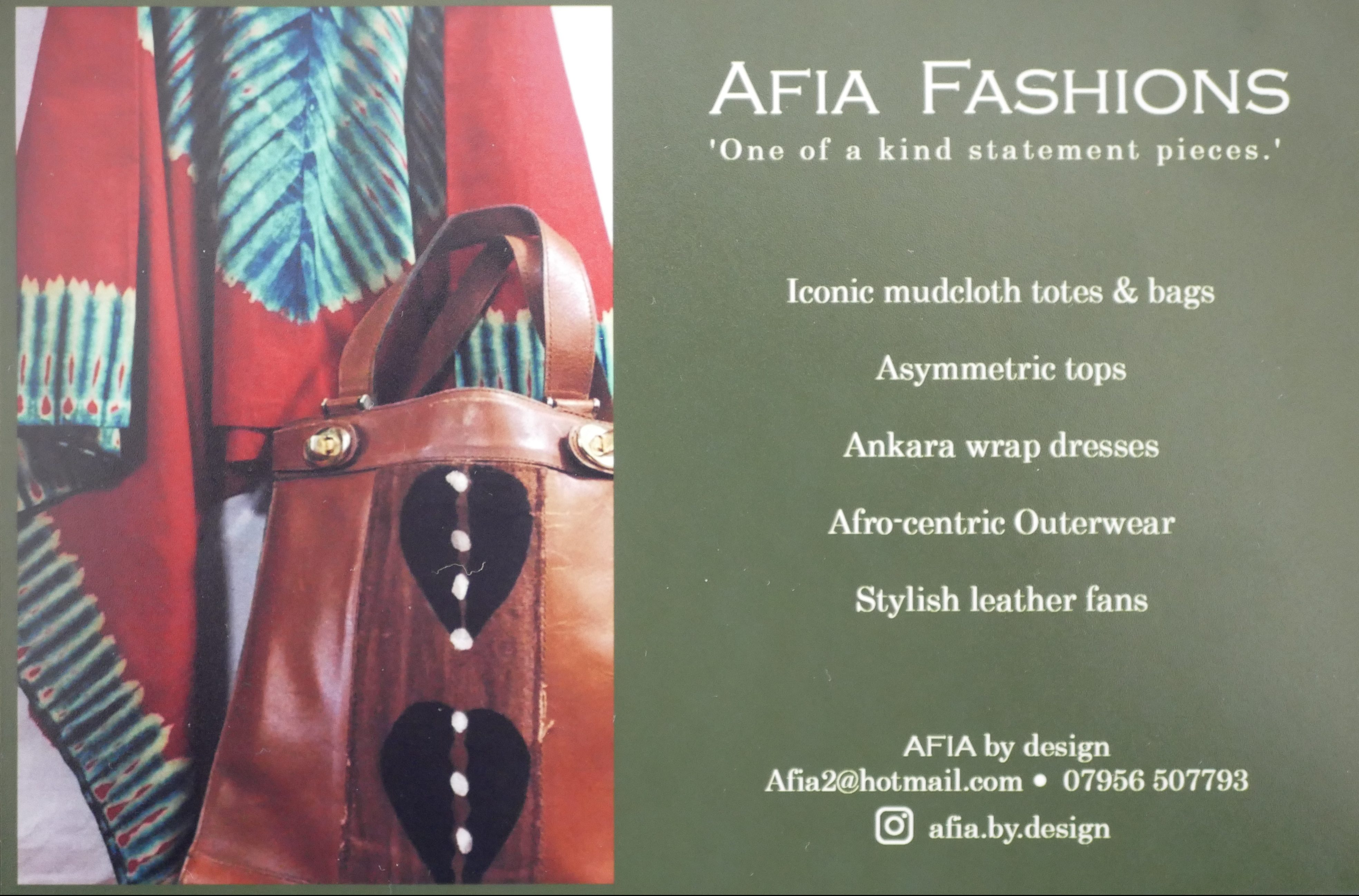 Look the part in one of a kind statement pieces by Afia Fashions.